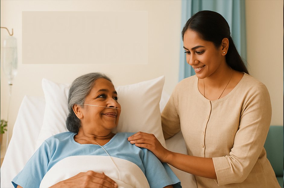 When a loved one is admitted to the hospital, it can be emotionally and physically overwhelming for families to stay by their side 24/7—especially when balancing work, home, and other responsibilities. That’s where Hridaya’s Hospital Bystander Support steps in with dependable care and presence.